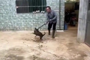 捕狗人看准时机,一钳子精准夹住恶犬脖子